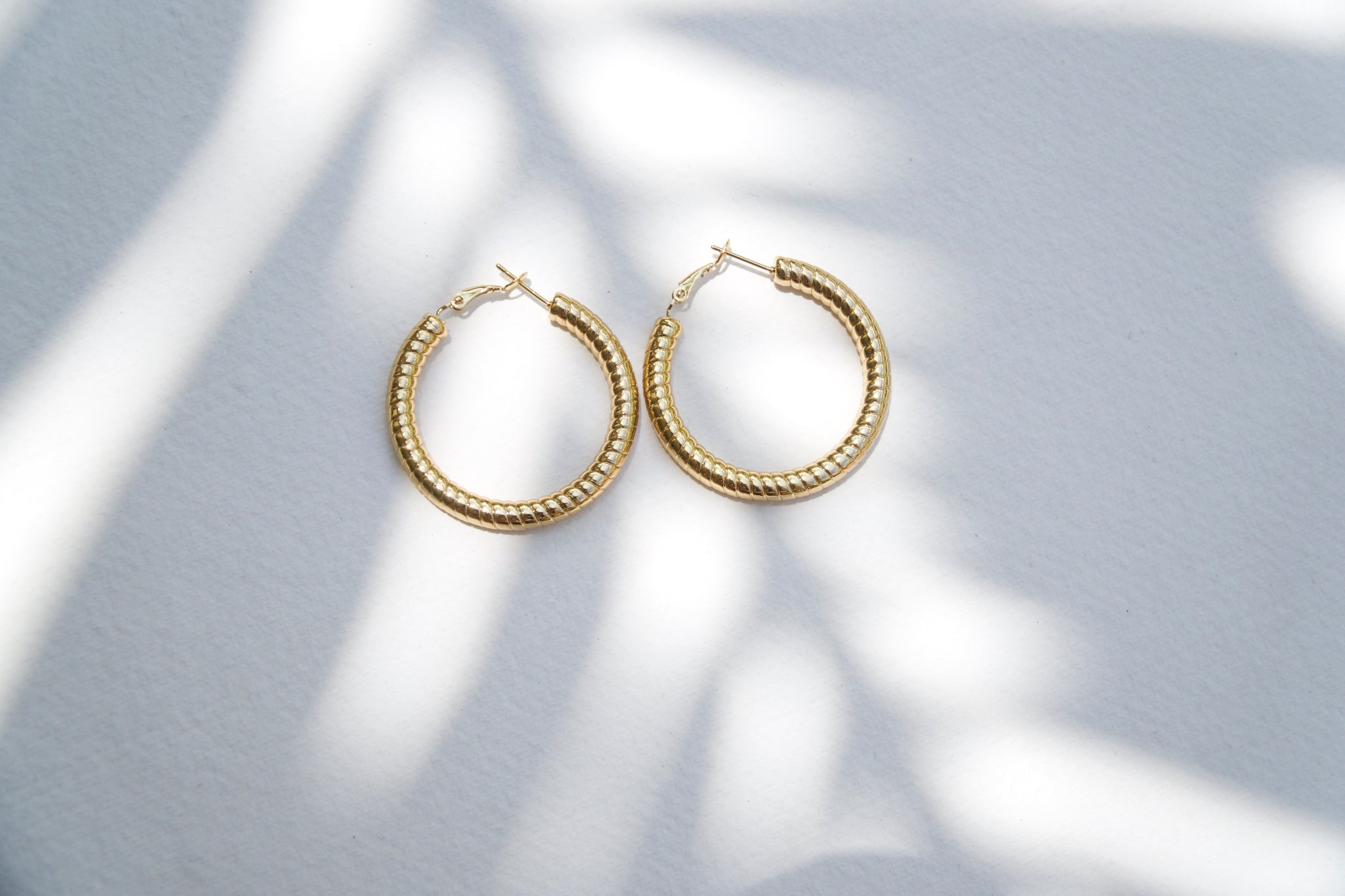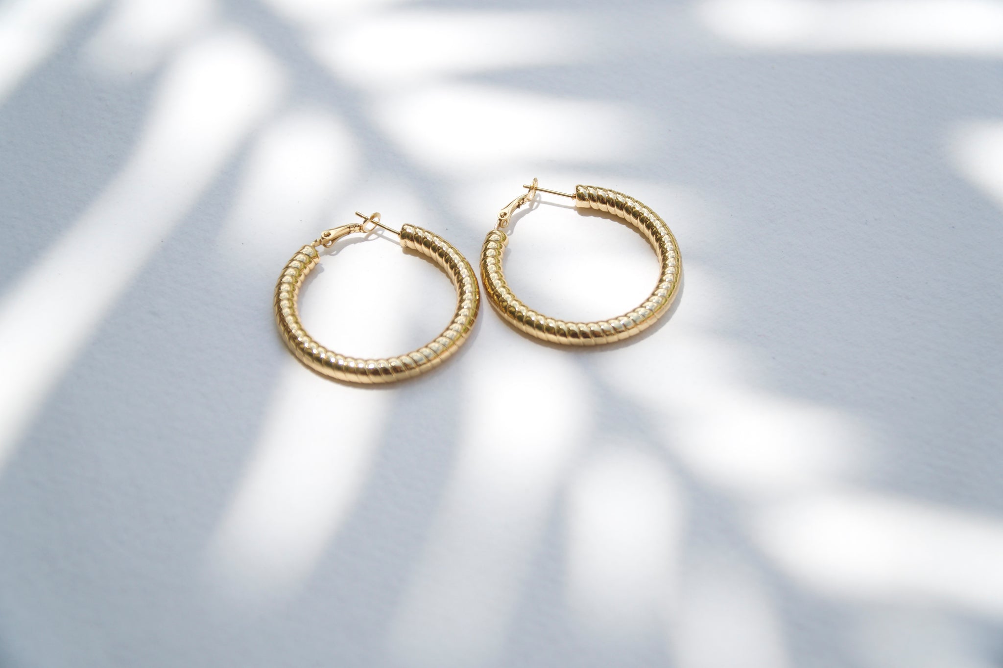 Éclat, zarif dokusu ve parlak yüzeyiyle klasik halka küpeye modern bir yorum kazandırır.
